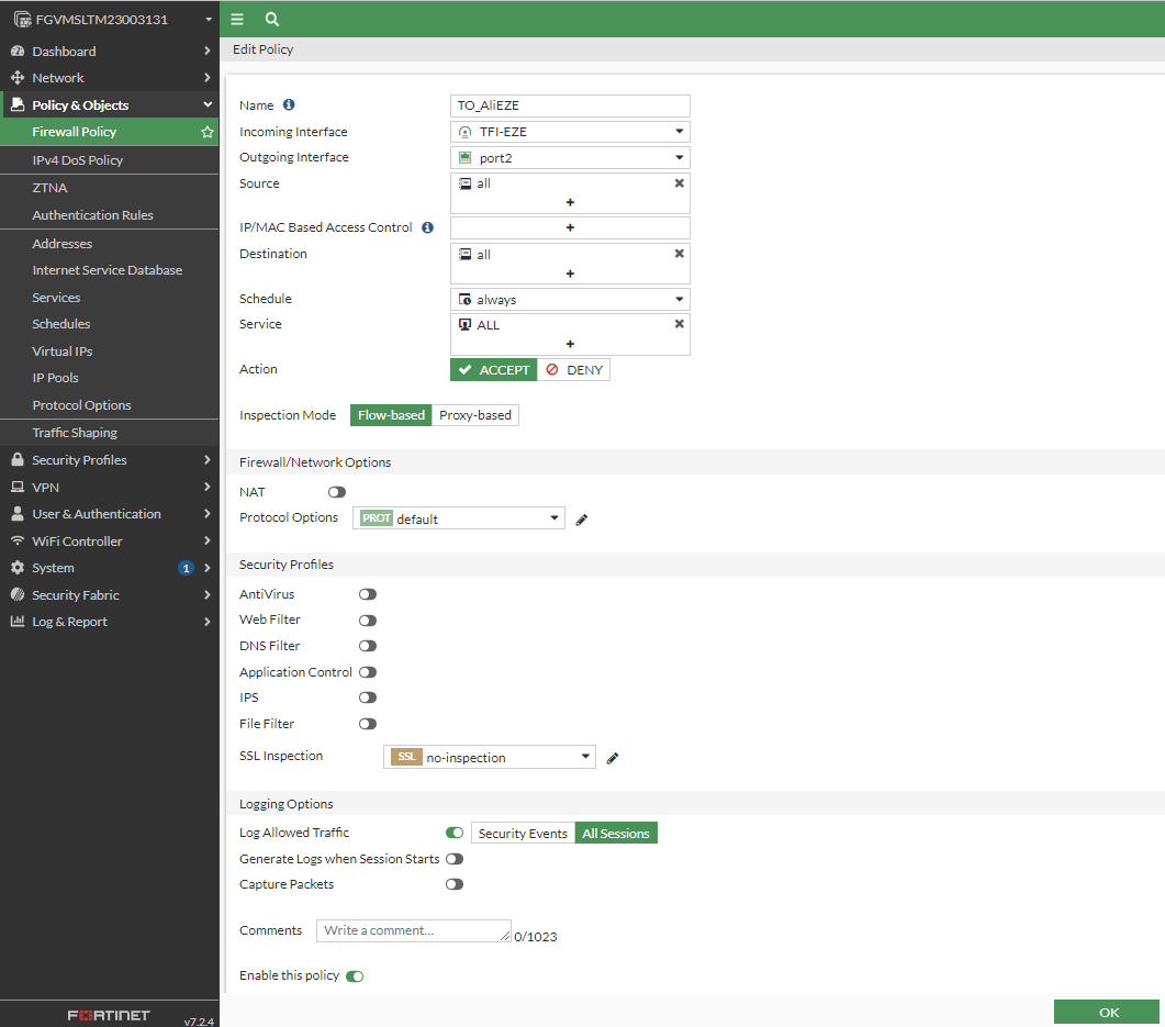 config firewall policy