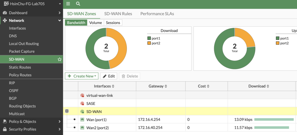 首先需要在 FortiGate 上创建 SD-WAN Zone