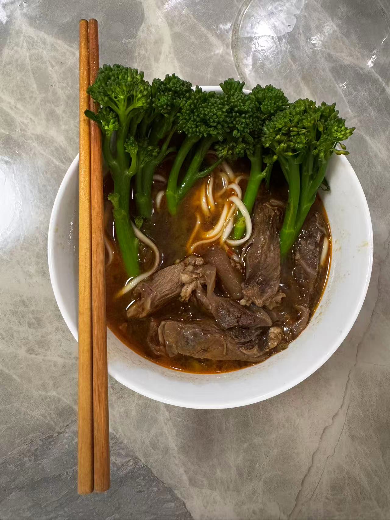 mm台式红烧牛肉面的牛肉分量很足,味道不错,而且面条给的很少,饿得快
