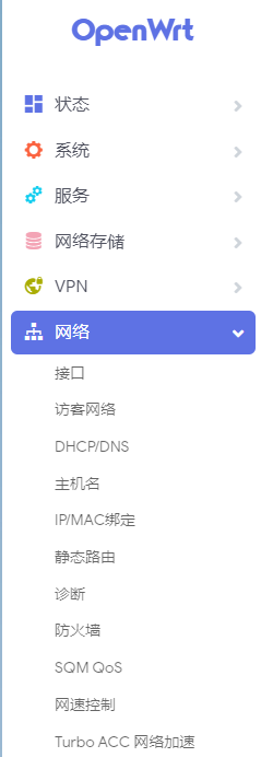 Openwrt 系统安装完成后,进入管理界面如下图所示:
